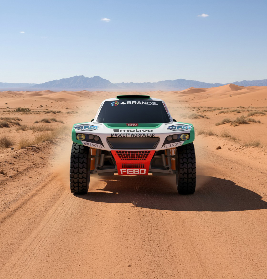 Emotive joins the Coronel Rally Team on their tenth Dakar Rally together. As the main partner, Emotive appears on the Century CR7 T1+ in a fresh green and white livery, supporting Tim and Tom Coronel as they take on one of motorsport’s toughest challenges from 3 to 17 January 2026 in Saudi Arabia.